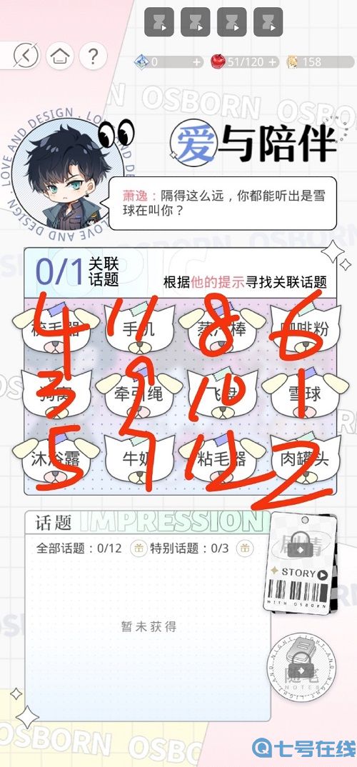 1、根据提示按照正确顺序寻找话题可以获得小熊星座*20,并且解锁下一个话题。