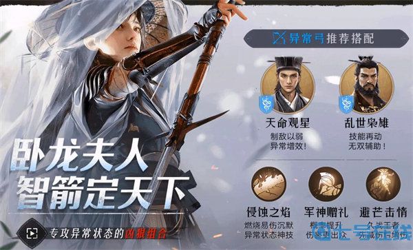施加异常状态,提供沉默和增伤效果,也是野外非常厉害的阵容搭配,除了女帝弓之外最强的弓兵阵容之一,毕业+技能需要在卧龙小卡池抽8k,加红度需要再增加。