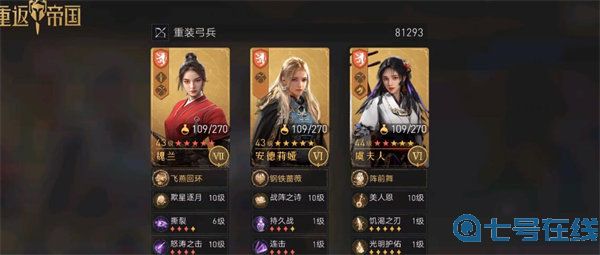 新手必备的弓兵阵容,魏兰是初期赠送的新手武将,虞夫人累冲即可获得,安德莉娅前期也方便抽到,其中魏兰作为输出核心,虞夫人和安德莉娅提供辅助连击和加血。
