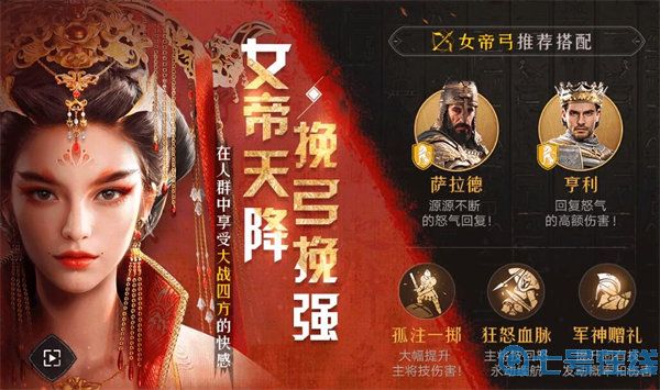 s1赛季最强T0阵容,野战必备的大佬氪金阵容,女帝需要3.5-5w才能抽到,在女帝之前一般会抽到亚瑟、亚力克斯,女帝技能,然后才是女帝。以女帝为核心,高怒气回复和AOE伤害,技能释放即可清屏。