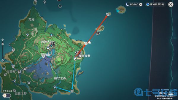 岛屿路线规划为:鸣神岛—神无冢—八酝岛—海袛岛—清籁岛。