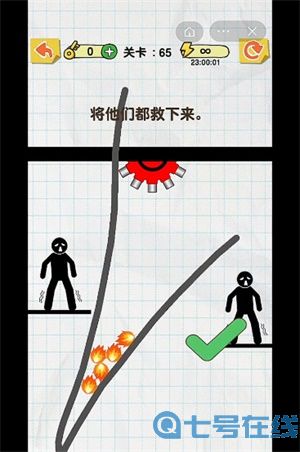 画线火柴人是一款非常有趣的休闲闯关的游戏。游戏中玩家在屏幕上画线的方式来抵挡凶器和危险,从而成功营救火柴人!游戏中第65关怎么过呢?下面小编给大家带来了《画线火柴人》第65关通关攻略,感兴趣的小伙伴们一起来看看吧。