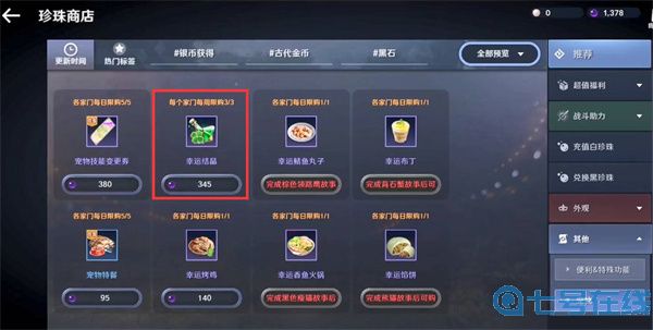 4、然后就可以在商品列表中看到幸运结晶这个物品了,需要花费345个黑珍珠才能购买,还是比较贵的。