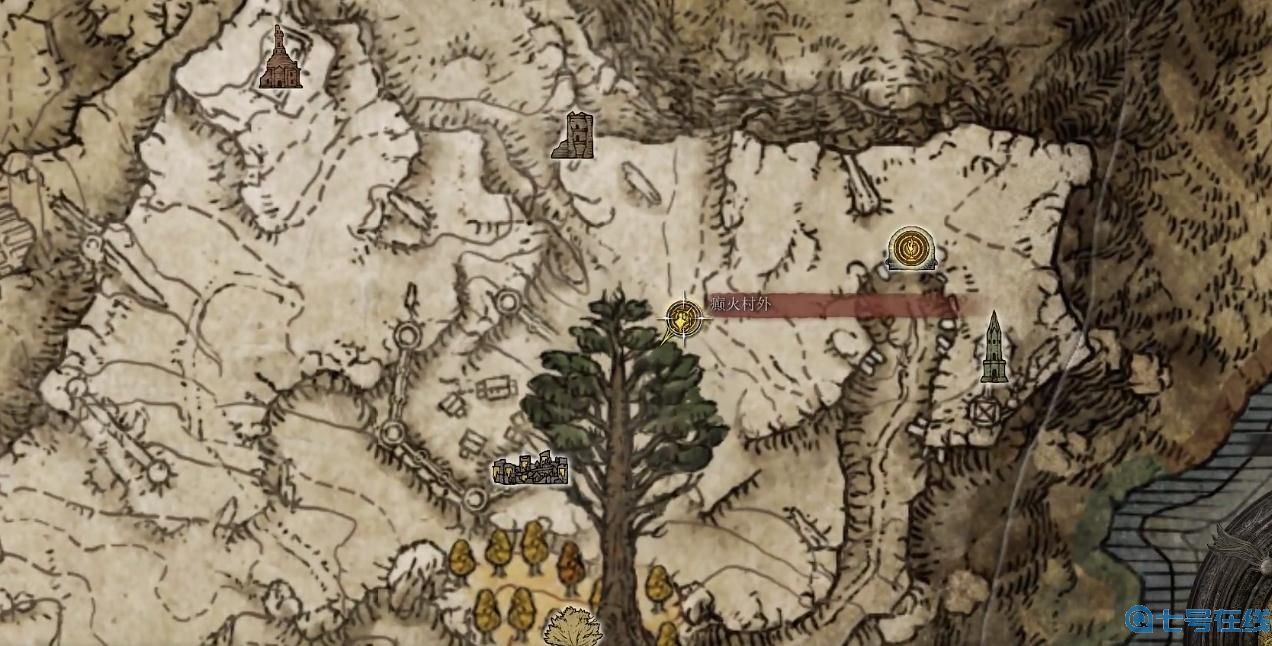玩家首先到达癫火村外赐福点,从此处赐福点朝着村内走。