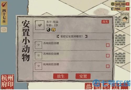 7、同时也可以在属性栏中点击画笔来更改名字,点击小翅膀可将小动物进行放生。