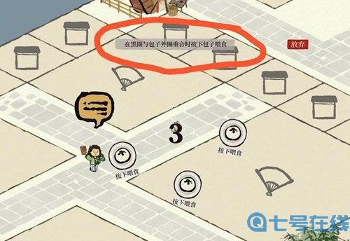 4、根据界面提示,当包子外面的黑色圆圈和包子快触碰到一起时,依次点击包子,出现“完美”便表示兔子捕捉成功。