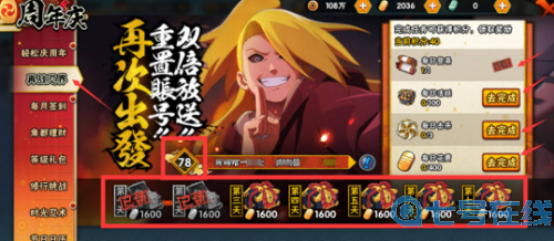 2、可以看到拥有再战忍界活动的这个区号,以前使用过的账号等级是78级,所以才会拥有再战忍界活动,活动玩家可以每天领取大量的金币,只需要完成每日任务即可,奖励可以连续领取7天。