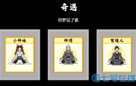 3、主角进入极乐洞府之后就会触发奇遇,然后会询问玩家:你梦见了谁?这时选择有缘人即可。