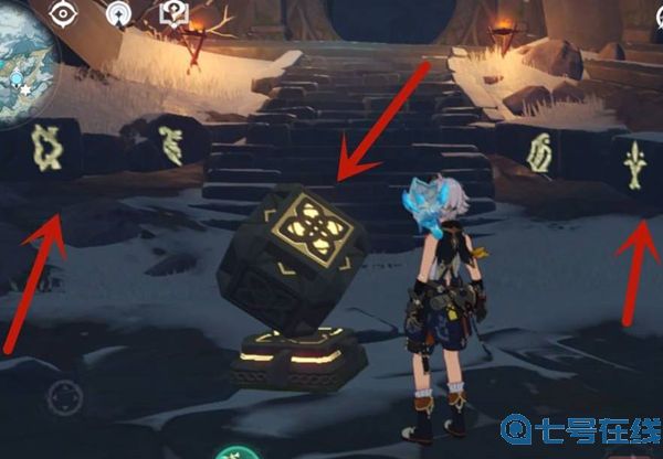 2、当我们点亮雪山上的八个石碑后,就可以启动中间的机关了。