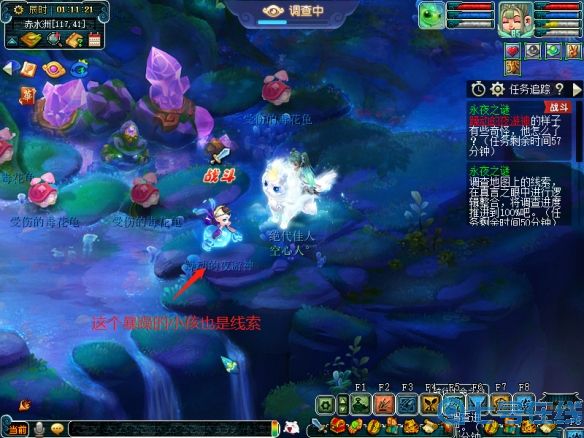 跟夜游神对话完自动传送到赤水洲,然后找食魂虫(就在附近,自动寻路就可以了)