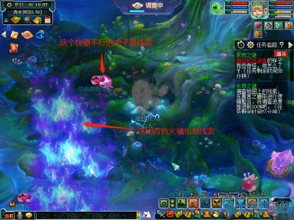 开始寻找线索 坐标82.57有一只快要不行了的虫子还有一堵青色的火墙都是线索