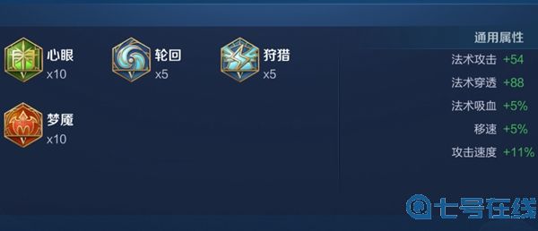 3、铭文搭配:10梦魇、5狩猎+5轮回、10心眼