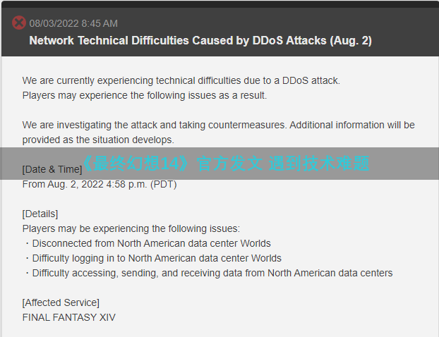 《最终幻想14》官方发文 遇到技术难题 2022-08-22