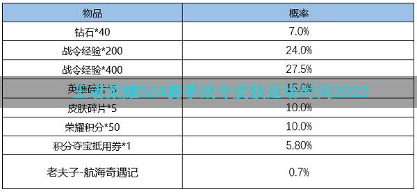 王者荣耀S24赛季战令皮肤返场时间2022 2022-08-11