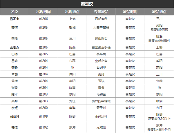 无悔华夏秦楚汉名臣地点时间攻略 2022-04-22